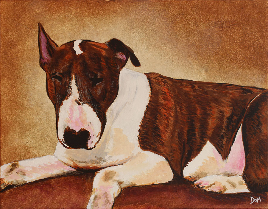 I love to paint in my spare time, capturing the bullie traits on canvas. Below are a few examples of recent paintings. I can produce commissioned work of your dog to order if required on a range on canvas sizes. All I would need is a suitable photo and some preference to the style and size you'd like.